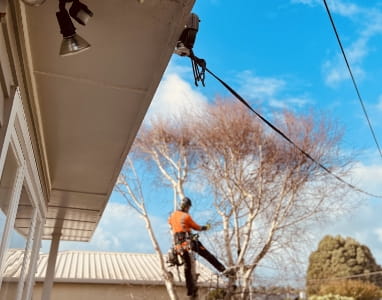 Trim any trees or vegetation growing near your service line (the line that runs from the road to your house). Working near power lines is dangerous so an approved contractor may be required – see our information about tree trimming.