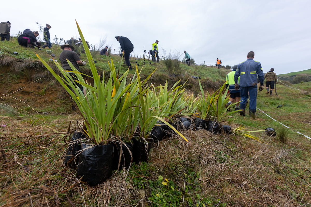 Over the past three years, we’ve been actively involved in tree planting to support these environmental goals. In 2022, nearly 100 locals, farmers, school kids, and representatives from organizations like South Waikato District Council, Downer, Farmlands, Fonterra, and Powerco teamed up to plant 4,500 trees in just two hours at Duxfield Reserve.